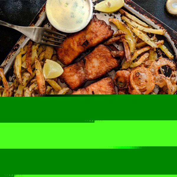 Kilo fried fish fillet and 750 gm fried squid, served with saydia rice, tehina, green salad, baba ghanoug, pickled cucumber and 5 bread