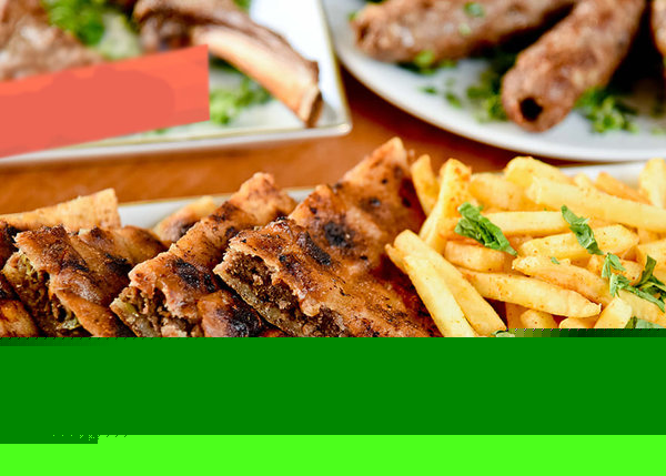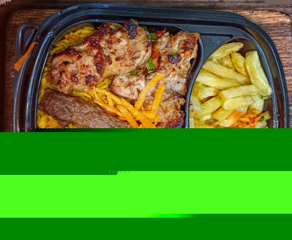 2 kofta, 2 tarb, steak slice, served with basmati rice, fries