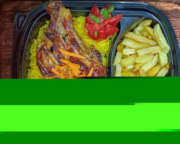 Served with fries, basmati rice, salad, 3 dates, drink, dessert, bread
