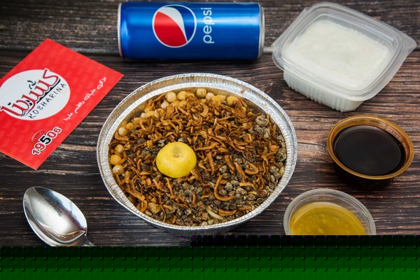 Koshary with meat or chicken shawerma, dessert and pepsi UNAVAILABLE