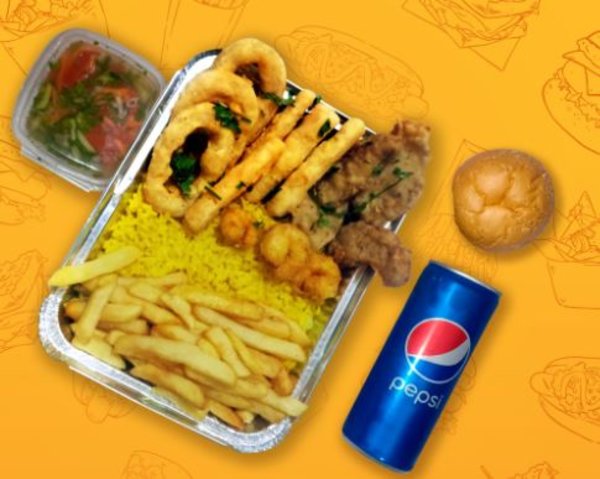 All meals are served with salad, rice, fries, kaiser and soft drink can