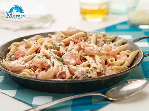 As per wight, roe, squid eggs and shrimp, red or cream sauce