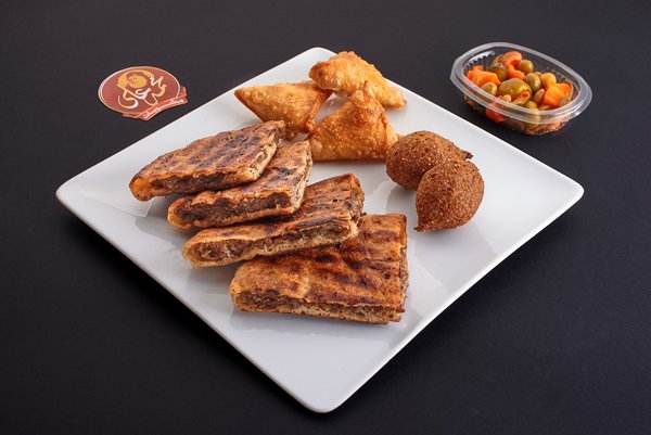 2 kobeba, hawawshi reghif and 3 cheese sambousak pieces