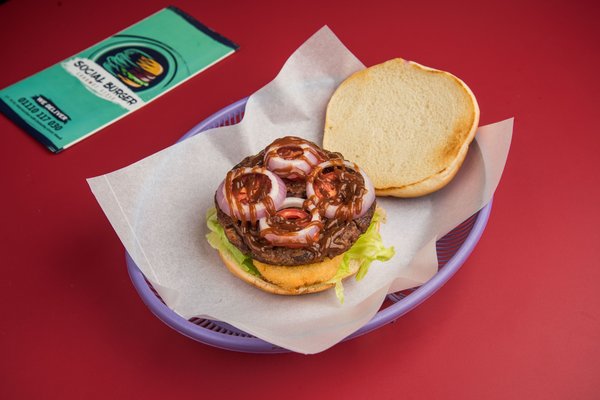 ExtremeGrilled beef burger patty, beef bacon, special sauce, jalapeno pepper, cheese, fried onion, fresh onion, tomatoes, lettuce |