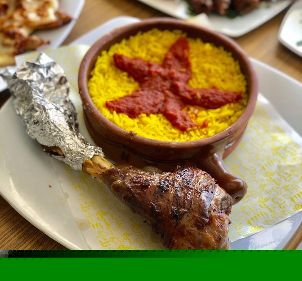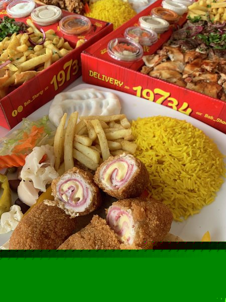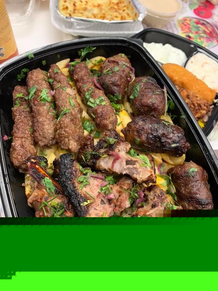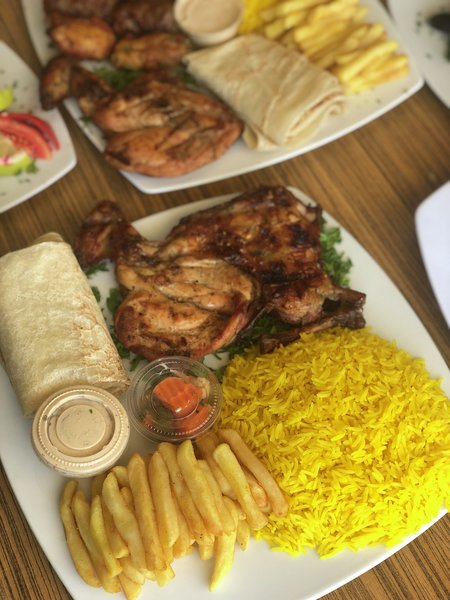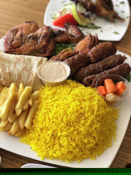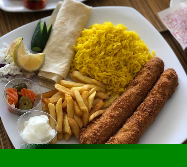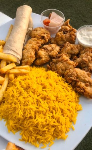 Served with basmati rice or fries, garlic dip, pickles and bread
