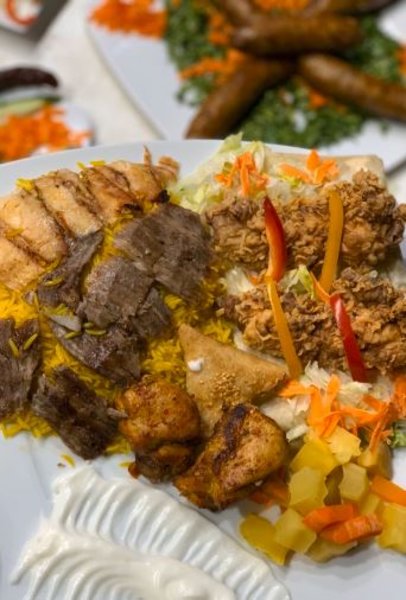 All meals served with basmati rice or fries, garlic dip, pickles & bread