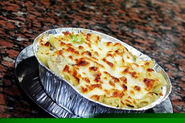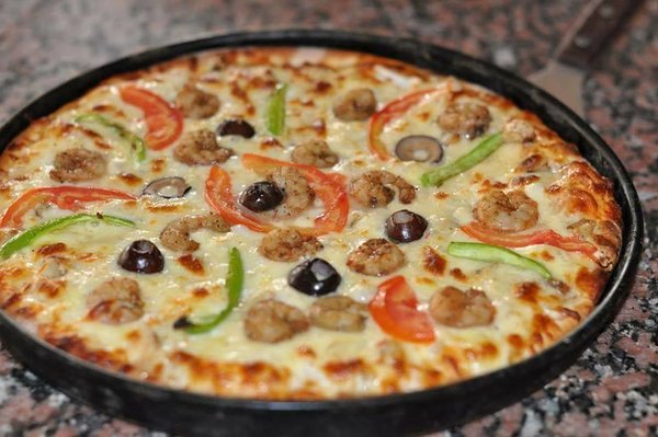 Dough wrapped completely, and covered with vegetables and mozzarella cheese