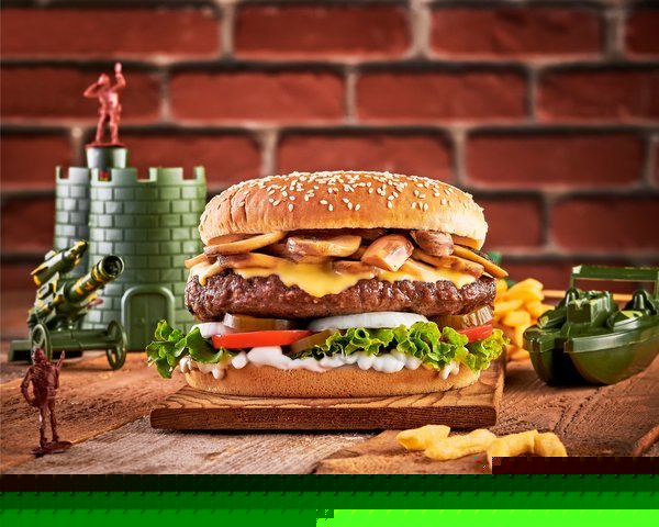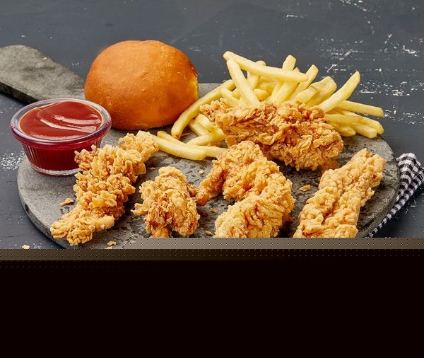 Kids MealBurger sandwich. 1 chicken piece, 2 chicken strips pieces or strips sandwich, fries, juice, toy |