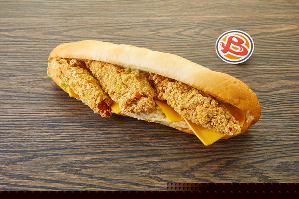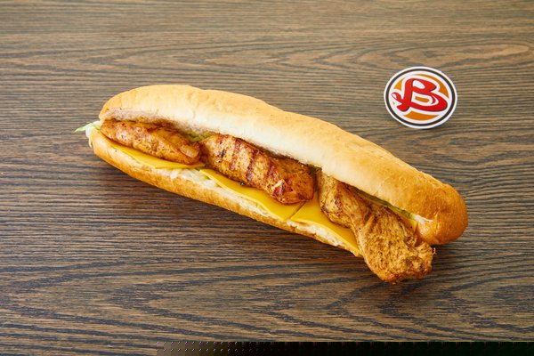 Spicy crispy chicken breasts, tomato, mayonnaise, iceberg lettuce, cheddar cheese and pickled cucumber