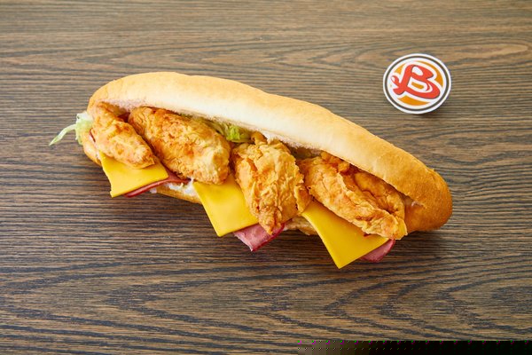 Spicy fried chicken breasts, smoked roast beef, cheddar cheese, iceberg lettuce and mayonnaise