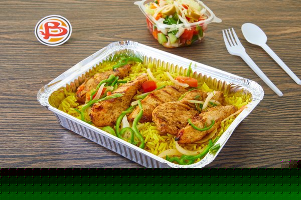 Grilled chicken breasts, pepper, onion, olives, BBQ and mayonnaise