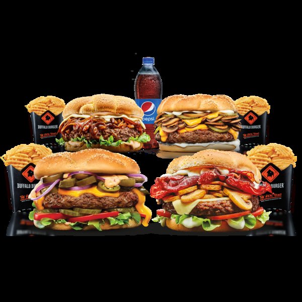 Pickled sliced jalapenos, Buffalo sauce and cheddar cheese on top of our pure beef burger patty