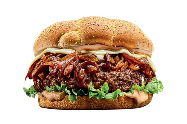 Grilled burger topped with sweet onion, BBQ sauce, creamy Charbroiled sauce and Swiss cheese