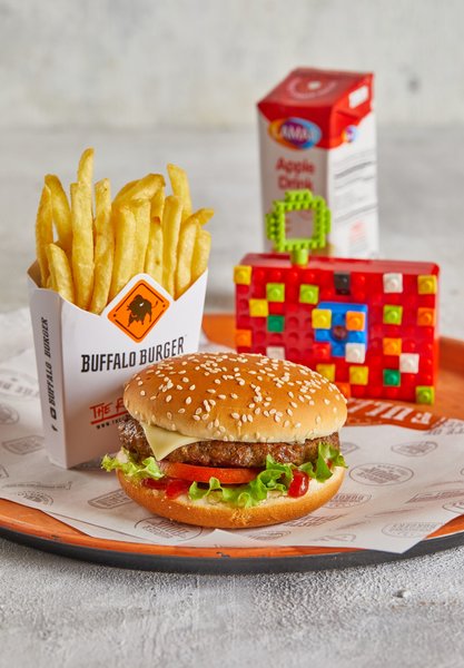 Crispy mini mozzarella sticks, loaded with ketchup and mustard drops, beef bacon and creamy Buffalo sauce on top of our pure beef burger patty