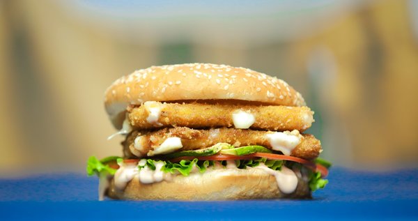 VeggieCrispy mozzarella patty, lettuce, tomato, zucchini, sweet pickles and cocktail sauce |