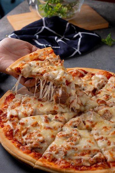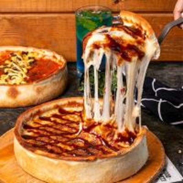 A deep pizza loaded with cheese and fillings. this is the blockbuster of the pizza world. Chicago with loads of mozzarella and chunky tomato sauce