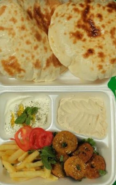 Sauce, mozzarella, shawerma slices, olives, pepper