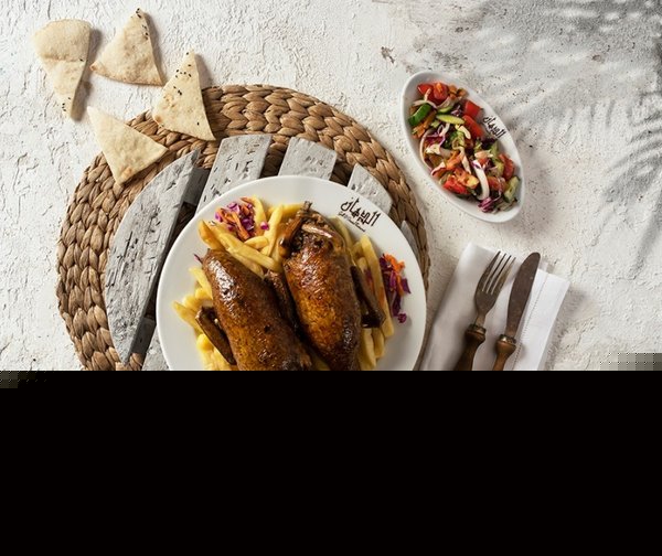 1/4 kofta, grilled pigeon with basmati rice, green salad and bread