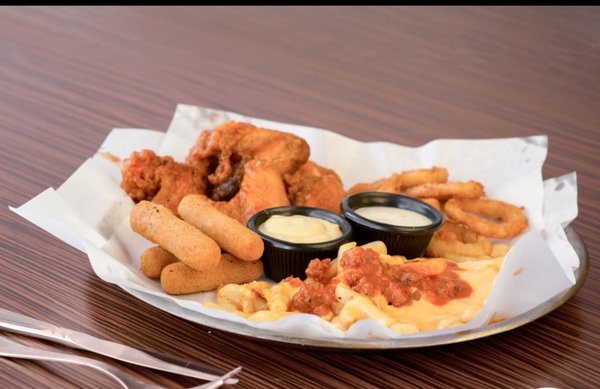 Pepper jack cheese, colored pepper, onion rings, brunch sauce