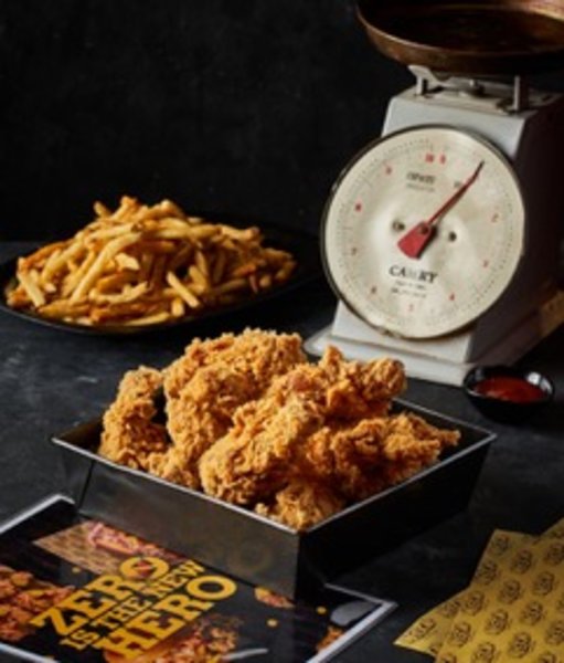 The Kids MealBreaded lightly seasoned mini chicken cubes with French fries, twinkies and juhayna milk mix |