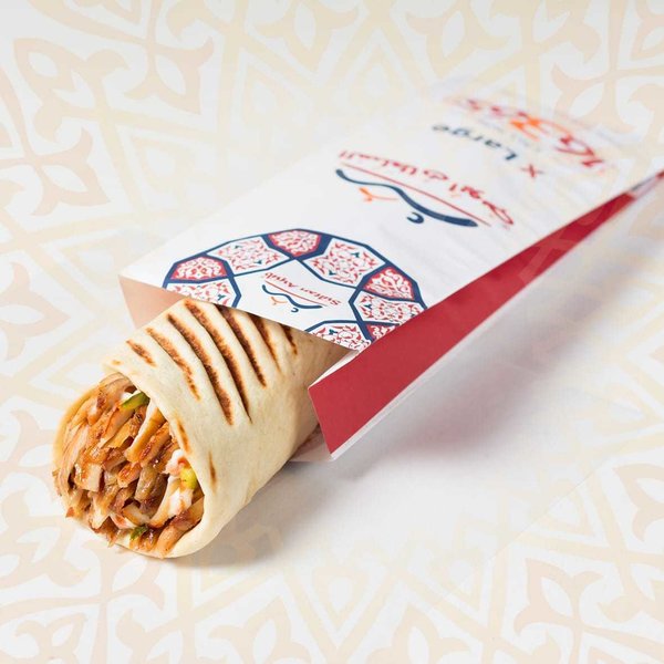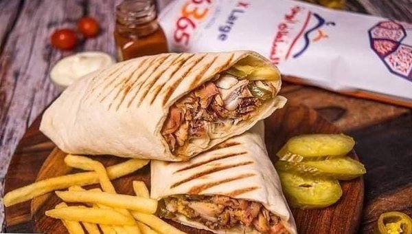 RozoShawerma or kebab, Egyptian red rice with peas and carrot, BBQ sauce, garlic dip |