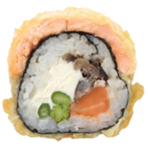 Tempura flakes, mushroom, Philadelphia cheese, salmon, nori, avocado & sushi Rice
