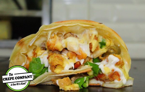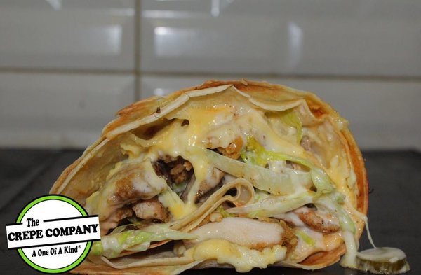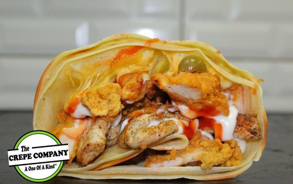 Herbs bread, gouda cheese, mix grilled chicken, chicken fajita, shish tawook, pickled cucumber, hot sauce and ranch sauce