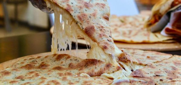 Regular bread, mix 3 cheese mozzarella, roomi, gouda, spicy crispy strips, cheddar bites and cheese sauce