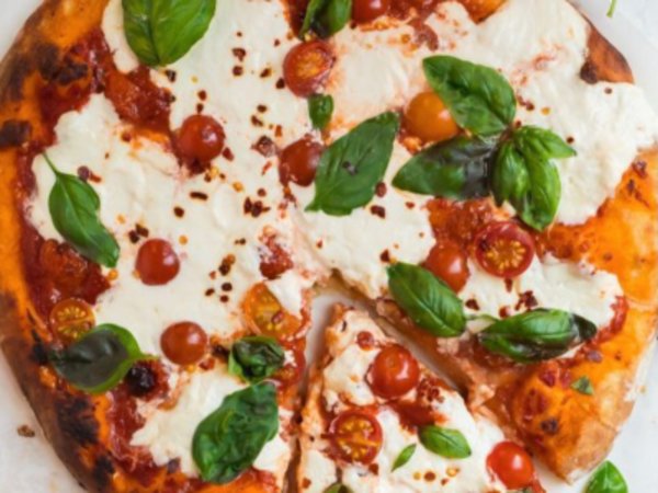 Fresh Onion, mozzarella cheese, tomato sauce, basil, cherry tomato