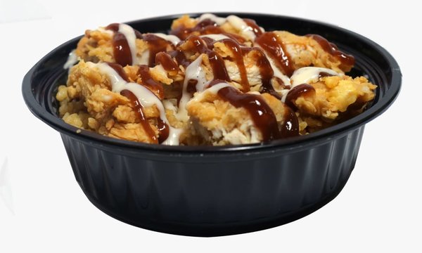 Rice with special spices, chicken pieces and BBQ sauce