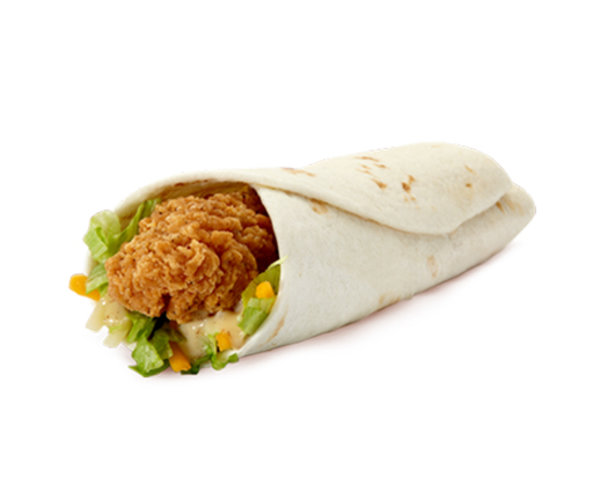 Chicken breasts, cheese sauce, lettuce, mayonnaise and tortilla bread