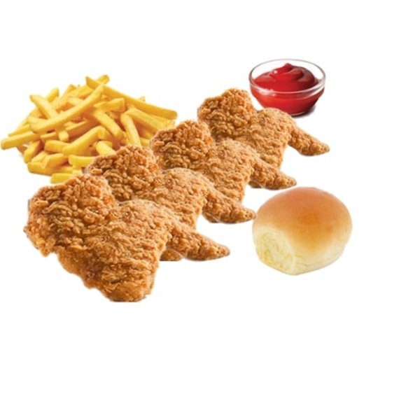 4 wings pieces served with fries, bread and ketchup