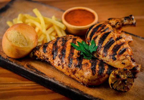 Comes with a bun & 1 choice of (white rice, red rice, peri-peri rice, curry rice or saute ) & 1 choice of (french fries, potato wedges, mashed potatoes or sauteed vegetables), with 1 choice of grilling sauce