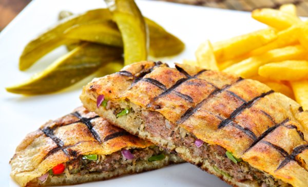 1/8 kofta, 1/8 shish tawook and 1/8 kebab. Served with French fries and salad