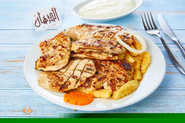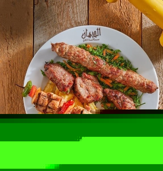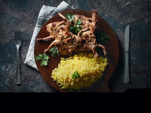 1/4 kofta, grilled pigeon with basmati rice, green salad and bread