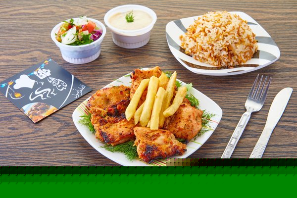 1/4 Kofta and 1/4 Chicken MealServed with rice, salad and bread |