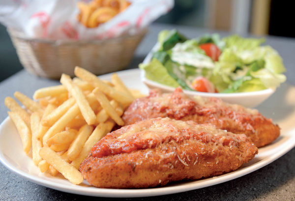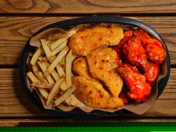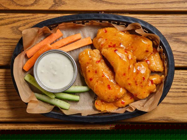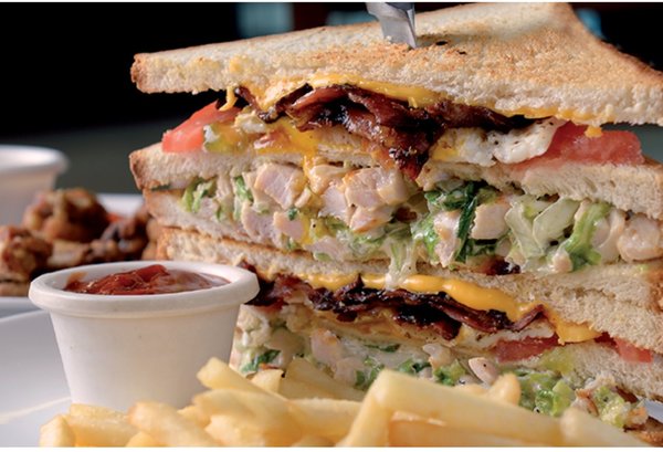 Crispy chicken tenders, American cheese, lettuce, tomato and honey mustard sauce