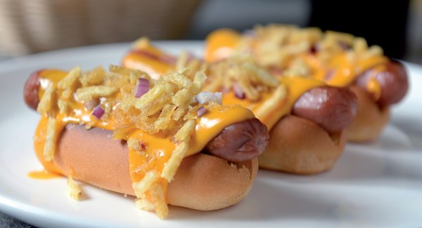 Grass fed patty generously drizzled with red cheddar sauce & cheetos bites