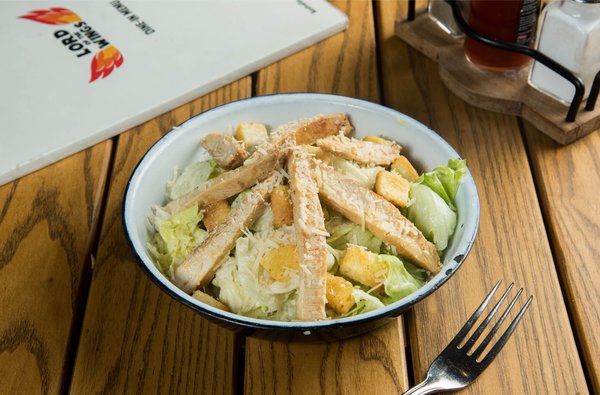 A perfectly grilled chicken breast served over a bed of lettuce & avocado, drizzled with our signature creamy caesar dressing