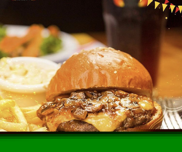 Angus patty, onion rings, mozzarella sticks, grilled bacon and BBQ smoky sauce