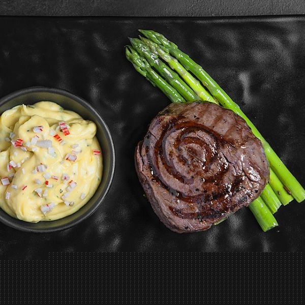 All steaks served with butter, 1 side and 1 sauce of your choice