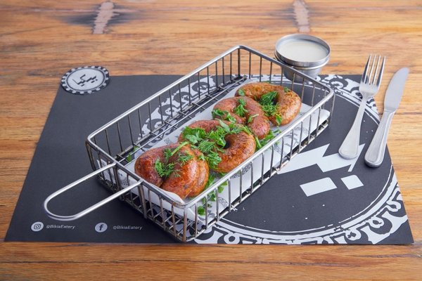 Taste the pleasure with the biggest appetizer dish from Bikia ( mombar, sausage, chicken tempura, meat roqaq, fried liver, liver with raddah, meat sambousak) served with tahini, cocktail sauce and pickles