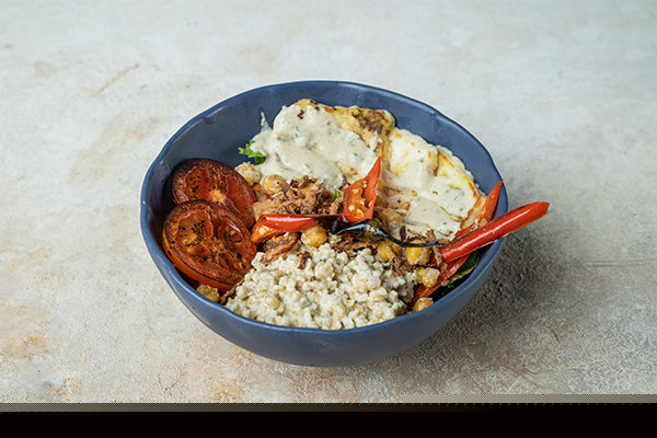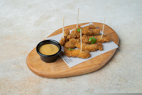 Tomato basil sauce, fried chicken bites, buffalo mozzarella, blue cheese crumbs, jalapeno