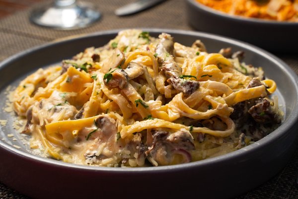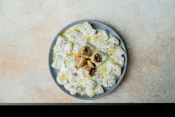 Tomato basil sauce, mushroom duxelles, shredded mozzarella, buffalo mozzarella, truffle oil