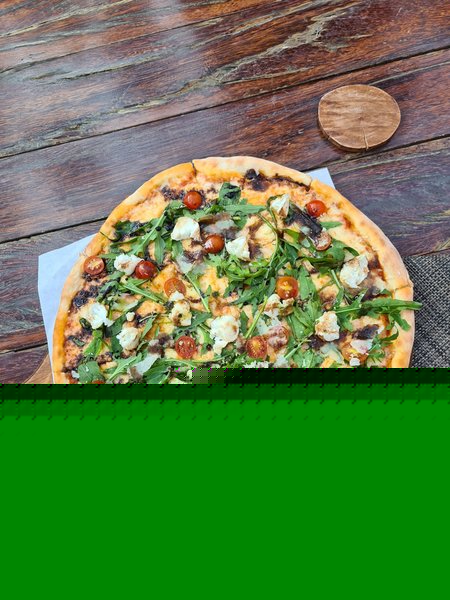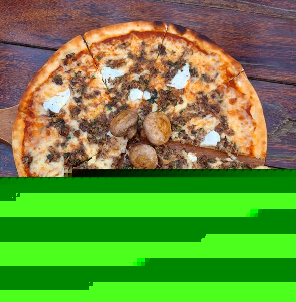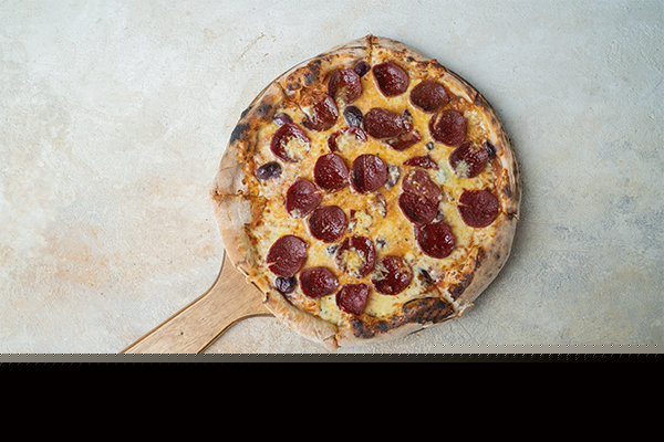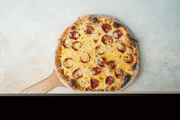 Black olives, red chilli, pepper salami, shredded mozzarella