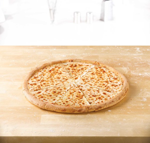 A blend of 6 delicious cheese in one pizza, emmental, cheddar, gouda, edam, Romano and mozzarella cheese