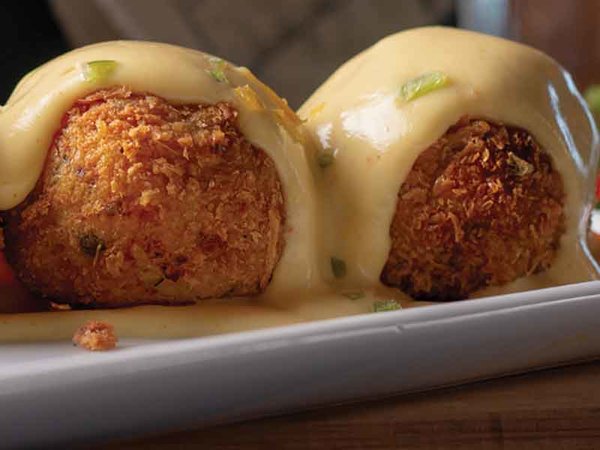 Fried cheese balls stuffed with melted cheese and jalapeno