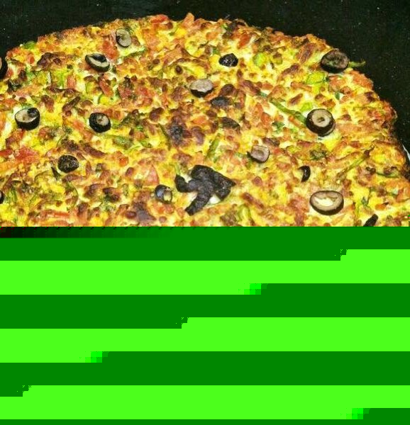 Mushroom, corn, vegetables, green olives, tomato sauce and mozzarella cheese