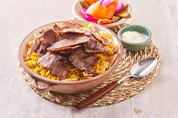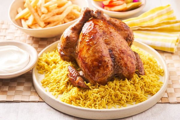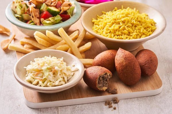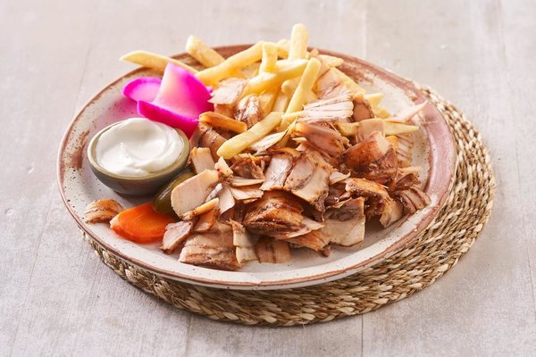 Served with garlic dip, spicy garlic dip, rice, fries, pickles, shami bread