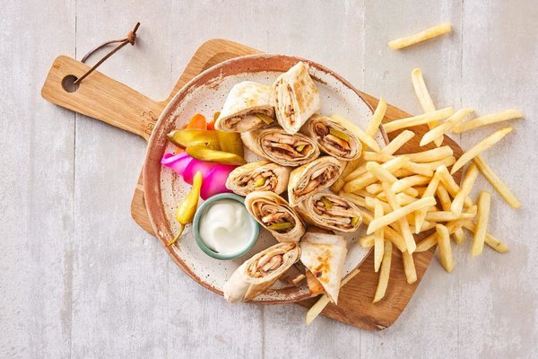 Served with garlic dip, spicy garlic dip, fries, shami bread and pickles